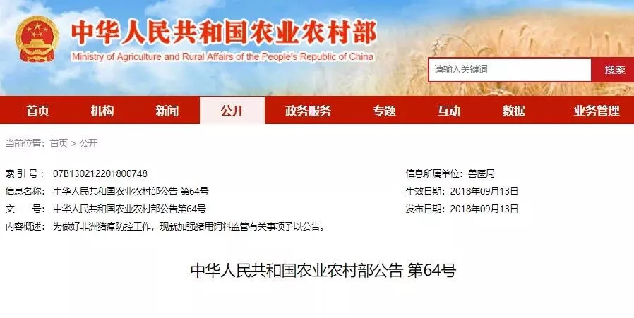为做好非洲猪瘟防控工作,现就加强猪用饲料监管有关事项予以公告