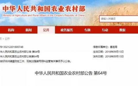 中华人民共和国农业农村部公告 第64号