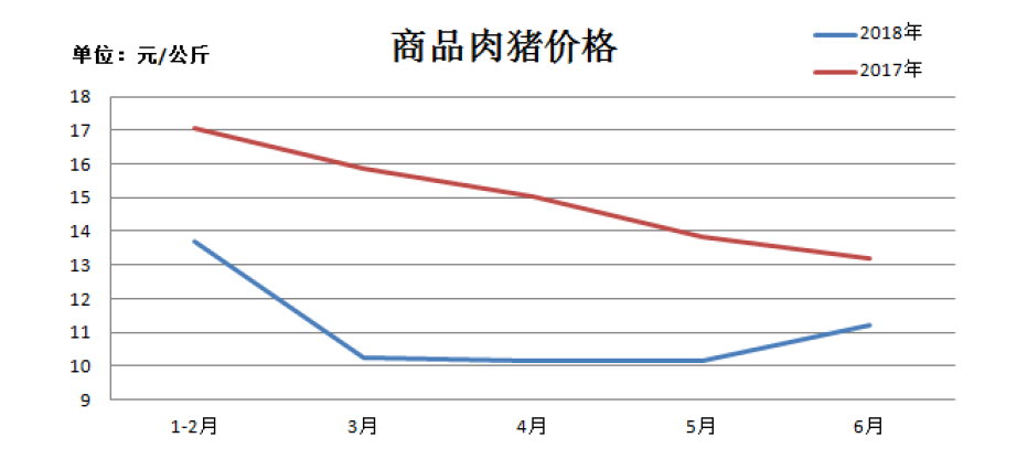 公告称,2018年年初,受春节消费习惯影响,商品肉猪价格基本维持在7.5元/斤左右,春节消费旺季过后,商品肉猪市场整体呈现大幅下滑的趋势,最低跌至3月份的5元/斤左右,虽然从6月上旬价格出现小幅反弹,但仍处于6元/斤以下。
