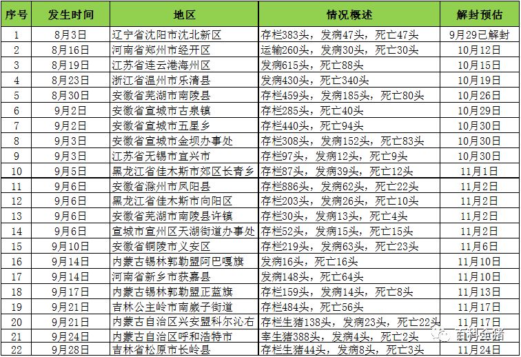 从2018年8月3日沈阳沈北确诊的第一起非洲猪瘟到现在,一共发生了二十二起非洲猪瘟,给整个行业带来经济损失近千万,这其中有天灾,也有人祸。在国庆节到来之前,我们不妨梳理一下在在短时间内,都发生了那些有关非洲猪瘟的事情。