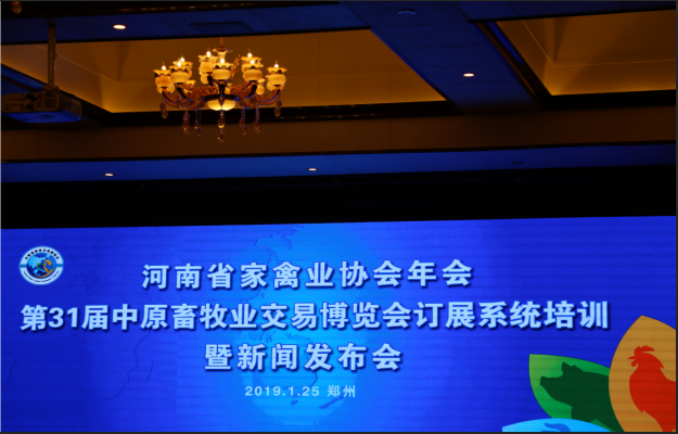 2019年1月25日,河南省家禽业协会年会、第31届中原畜牧业交易博览会定展系统培训即新闻发布会在河南省郑州市举行。