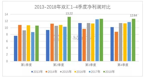 图4 2013-2018年双汇1-4季度净利润对比