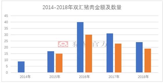 图7 2014-2018年双汇进口猪肉金额及数量