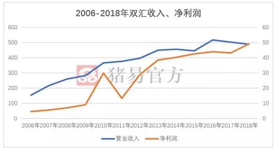 图1 2006-2018年双汇收入、净利润