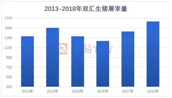 2018年双汇屠宰生猪1630.56万头,同比2017年增长14.27%,为历史屠宰量最高的一年。