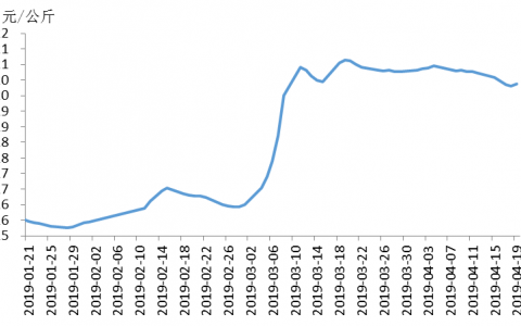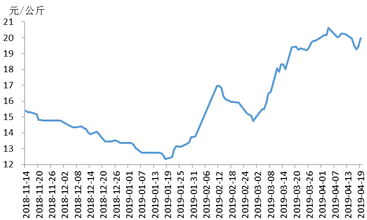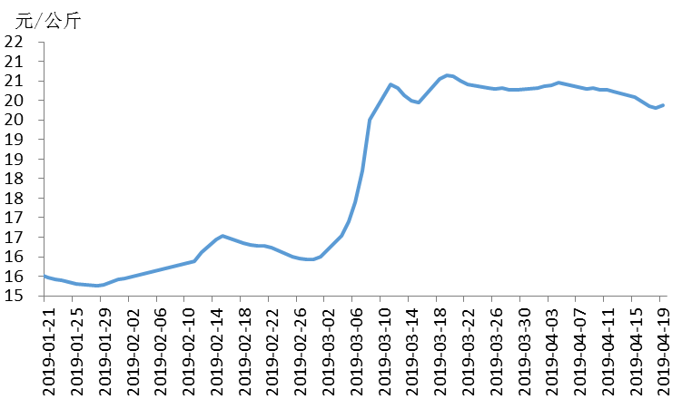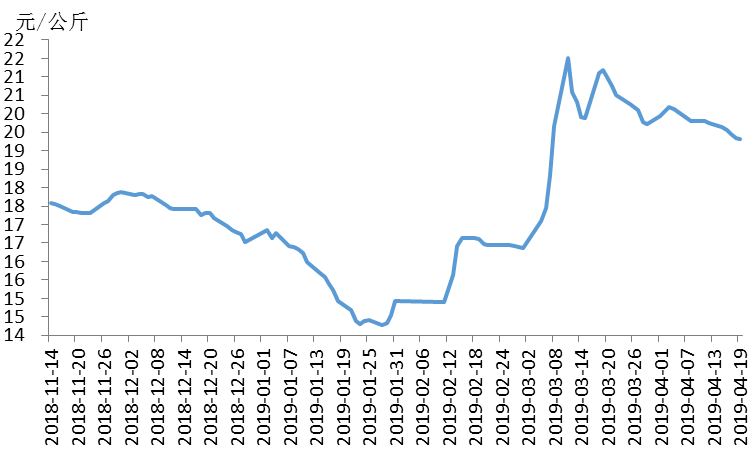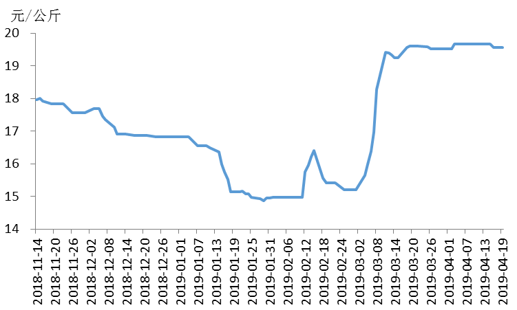 据农业农村部信息中心和山东卓创资讯股份有限公司联合监测,2019年第16周(即4月15日-4月19日,以下简称本周),16省(直辖市)瘦肉型白条猪肉出厂价格总指数的周平均值为每公斤19.92元,环比跌1.8%,同比涨44.4%。