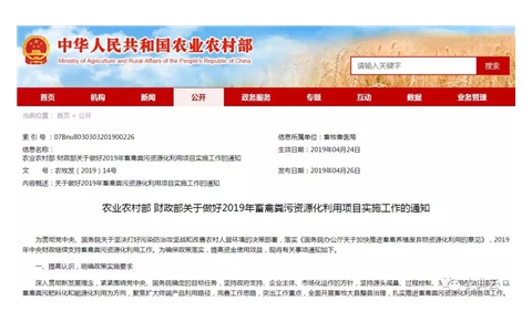 4月26日,为落实《国务院办公厅关于加快推进畜禽养殖废弃物资源化利用的意见》,2019年中央财政继续支持畜禽粪污资源化利用工作。为确保政策落实,提高资金使用效益,现将有关事项通知如下。