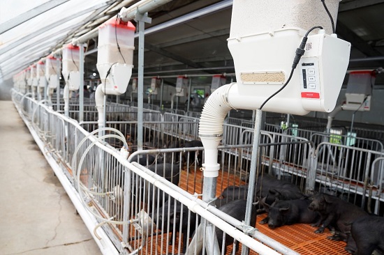 在精气神的两个养殖园区、100多栋山黑猪猪舍中,均部署了基于AI、IoT和SaaS技术的京东农牧智能养殖解决方案,其中包含神农大脑、神农物联网设备、神农系统的相关系统和硬件设备。