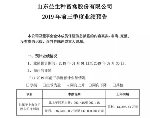 10月8日晚,白羽鸡产业上游企业益生股份发布三季度业绩预告,公司预计净利润同比上升993.41%-997.14%。