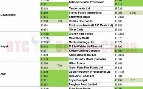 本次新增输华准入的14家工厂中,ABP独占4家,Kepak和Dawn Meats各占3家,Ashbourne Meat Processors有2家,剩下两家分别为Kildare Chilling Company和Euro Farm Foods。