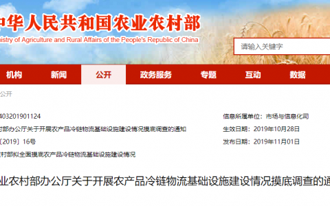 农业农村部办公厅关于开展农产品冷链物流基础设施建设情况摸底调查的通知