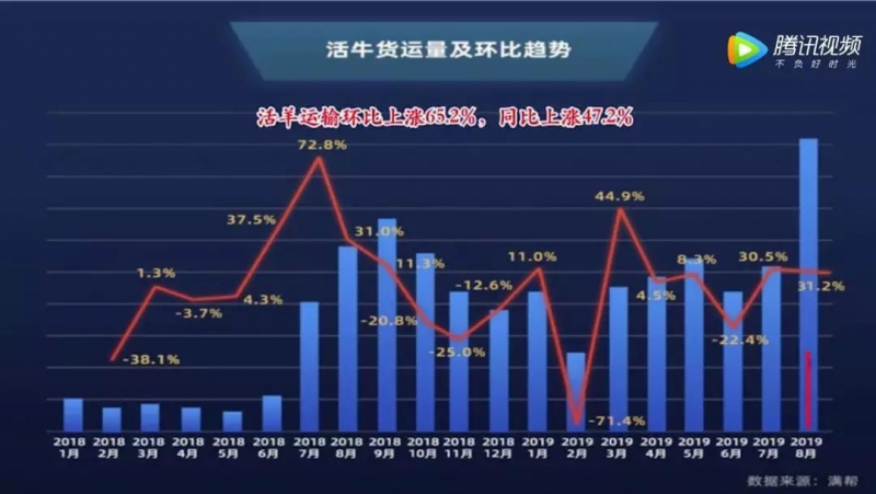 生猪禁运和涨价,也让牛羊肉大大受益。2019年8月牛肉货运量同比上涨356%,环比上涨43.6%,羊肉货运量同比上涨236%,环比上涨42.4%。活羊运输环比上涨65.2%,同比上涨47.2%,活牛运输环比上涨31.2%,同比上涨53.9%。