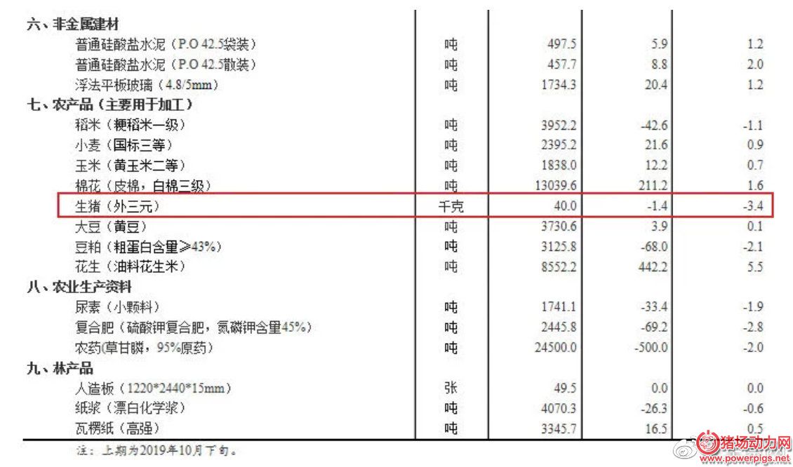 11月上旬生猪价格环比下跌3.4%至40元每公斤