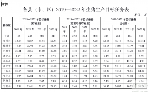 附件:各县(市、区)2019—2022年生猪生产目标任务表
