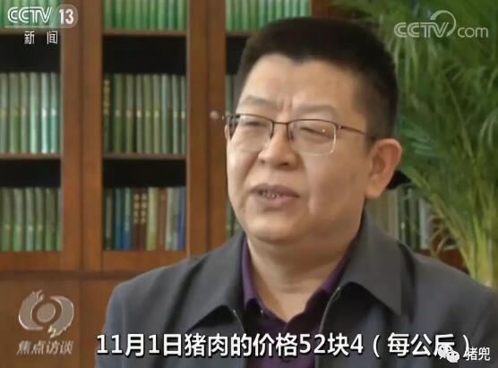 农业农村部畜牧兽医局二级巡视员辛国昌:二次育肥的这种肥猪陆续供应上市,客观上提高了肉产量,现在出栏4头猪就相当于过去出栏5头猪,因为猪养得比较大,包括企业从三 元肥猪里面选留母猪告一段落,这个生产积极恢复向好,人们的这种涨价预期削弱了。我们200个批发市场的监测,11月1日猪肉的价格52块4,12月1日猪肉的价格41块5,(一个月)1公斤下降了接近11块钱。