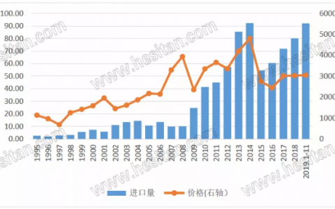 2019年1-11月,我国共进口大包奶粉92.09万吨,已与历史最高年份2014年的全年进口量(92.34万吨)相当,同比+24.4%。根据2018年12月6.14万吨的进口量数据、按照前11个月平均增幅预估:2019年12月进口量约为8万吨,全年大包粉进口总量接近或超过100万吨,创历史新高。