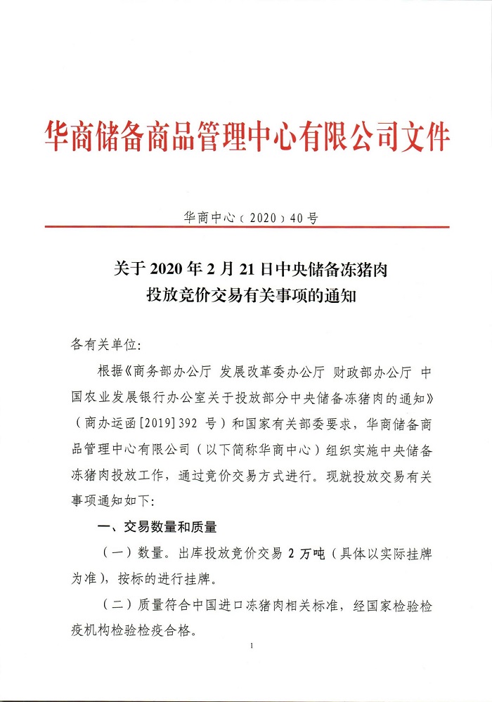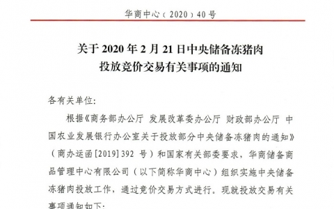 储网2月18日晚发布中央储备冻猪肉投放竞价交易有关事项的通知,将竞价交易2万吨,交易时间为2020年2月21日下午13时至16时,这是今年以来第7批投放的中央储备冻猪肉,累计投放量将达15万吨。