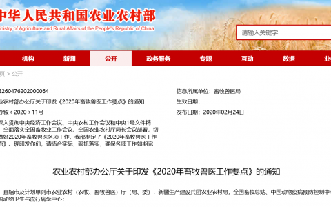 农业农村部办公厅关于印发《2020年畜牧兽医工作要点》的通知