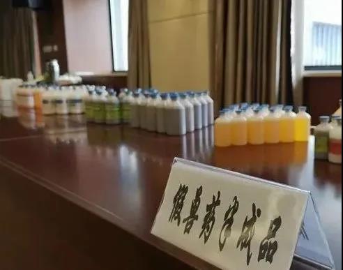 警方现场查扣假冒等16家兽药疫苗公司假兽药疫苗成品5.8万余瓶、半成品6.8万余瓶、空灌装瓶3.8万余个、瓶盖60万余个,270多个兽药品种,外包装盒、标签、说明书等百万余份、生产设备3套、作案手机20余部、销售账册60余本。嘉兴警方破获的这起特大生产、销售假兽药案,令人瞠目结舌。