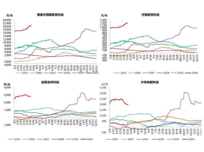 安徽马鞍山:对祖代种猪按每头100元,父母代种猪每头50元的标准给予一次性补贴,单个养殖场最高补贴不超过20万元。一般来说,如此给力的政策优惠,都是面对已经出现严重亏损的行业,但生猪行业却恰好相反,行业利润正处于历史最高水平。按PSY为18,仔猪15公斤,育肥猪120公斤计算,目前母猪年预期繁育利润超过20000元/头,仔猪繁育利润超过1200元/头。
