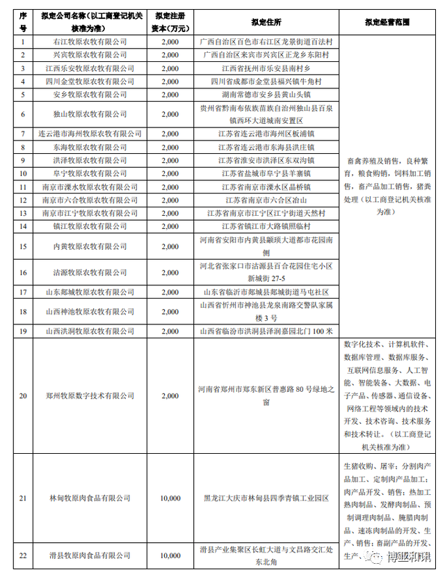 牧原股份拟8亿元自有资金出资设立24家子公司