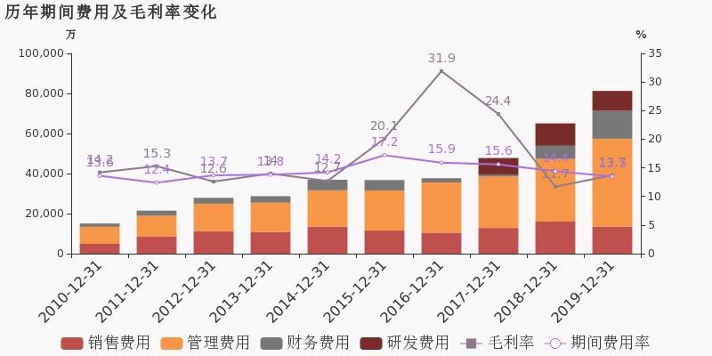 公司2019年营业成本51.9亿,同比增长29.9%,低于营业收入32.9%的增速,导致毛利率上升2%。期间费用率为13.5%,较去年下降0.9个百分点。经营性现金流大幅上升180%至5.3亿。
