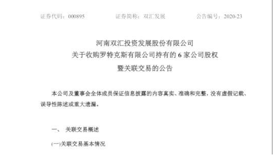 据悉,罗特克斯是为参与双汇集团股权转让项目而在香港注册成立的项目公司。2019年9月份,双汇发展通过吸收合并的方式对双汇集团进行资产重组,这笔规模达402亿元的交易完成后,成立于1994年的双汇集团将完成其使命,退出历史舞台。其母公司罗特克斯成为双汇发展的绝对控股股东,管理结构也将获得简化。