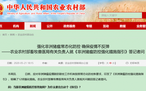 ——农业农村部畜牧兽医局有关负责人就《非洲猪瘟防控强化措施指引》答记者问