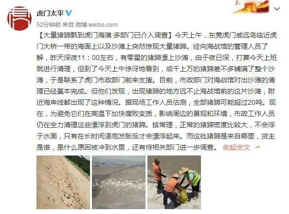 疫情之下,这批猪蹄是来自哪里,货主是谁,是什么原因被冲到水里,并漂流到虎门,还有待相关部门的进一步调查。
