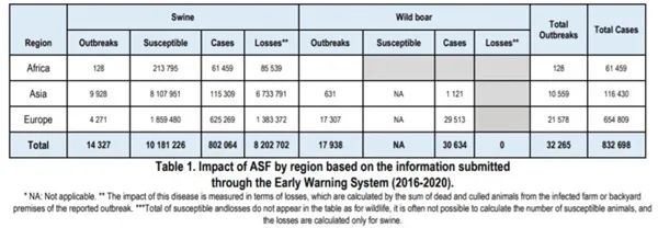 报告提供了关于非洲猪瘟的历史概述。包括协会成员通过全球动物卫生信息填报系统(WAHIS)向OIE报告的2016年至2020年(截至6月18日)的活动,自2016年以来,非洲猪瘟疫情数量显著增加,这种疾病存在于非洲、欧洲和亚洲地区。