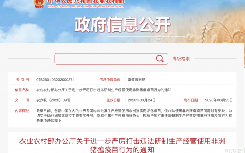 农业农村部办公厅关于进一步严厉打击违法研制生产经营使用非洲猪瘟疫苗行为的通知