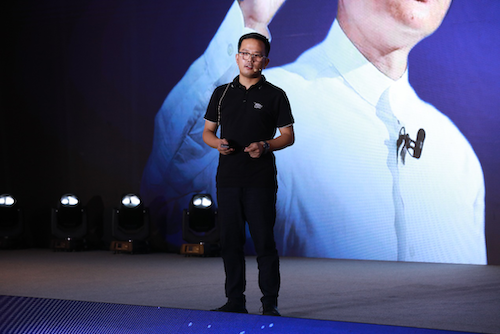 图为:北京小龙潜行科技有限公司CEO鞠铁柱先生现场演讲