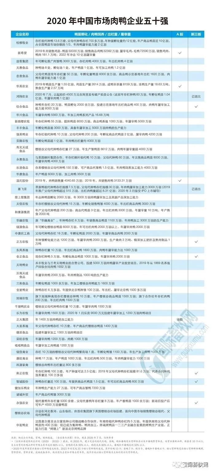 中国肉鸭企业五十强出炉