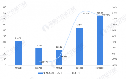 根据前瞻产业研究院分析,2019年在非洲猪瘟大背景下,我国猪肉供应不足以满足国内需求,需大量进口国外猪肉来弥补内需空缺。据海关数据,2020年上半年我国猪肉进口额总计428.95万元,增幅为132.9%。我国自2020年1月1日起,将冻结猪肉进口关税由12%暂时下调至8%,有利于增加猪肉进口量,有效缓解国内供应紧缺问题。