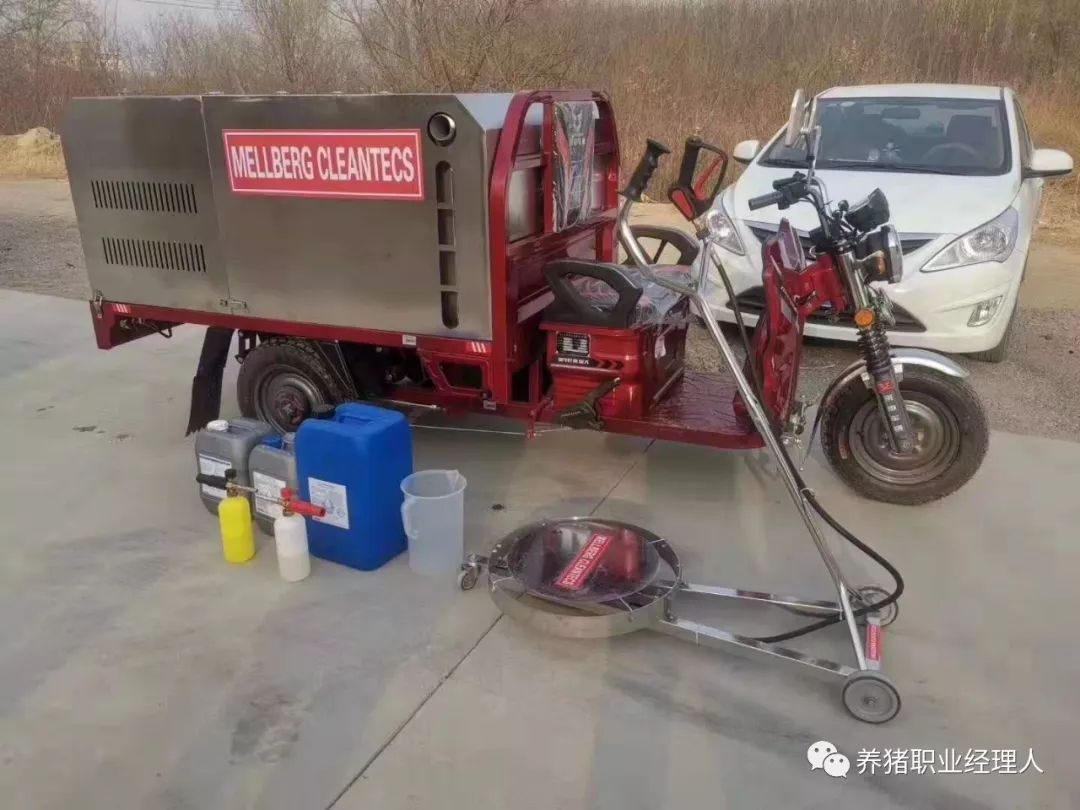 这是一辆移动的清洗消毒车,特别适合家庭农场做车辆洗消。可能不是所有的猪场都可以花100万重金建设自己的车辆洗消及烘干站,但如果仅花费四五万元就能购到一台这样移动的热水高压清洗设备,能对车辆进行全方位的洗消(包括底盘),真心觉得是个不错的选择。当然泡沫清洁剂及消毒剂也必须选择世界上最优秀的,好设备配上高质量的碱性高泡清洁剂才会有最佳的效果。