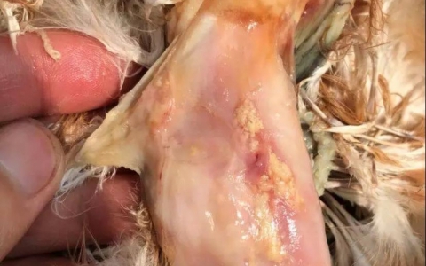 此种反应在寒冷季节出现的几率较大。其主要原因是在注射疫苗前不进行预温,注射后容易导致毛细血管收缩,时间长了局部坏死,出现炎症,疫苗被包起来形成游离的肿块。这种情况疫苗吸收不良,不能产生良好的免疫应答。病鸡表现精神不振,采食下降,易继发大肠杆菌病、支原体病等疾病,抗体水平不能达到预期效果。所以,寒冷季节注射油苗前要预温,需达到35~37℃左右。此外,灭活苗中灭活剂甲醛的含量超标也极易引起注射部位炎症坏死,严重者可引起产蛋鸡产蛋率大幅度下降。
