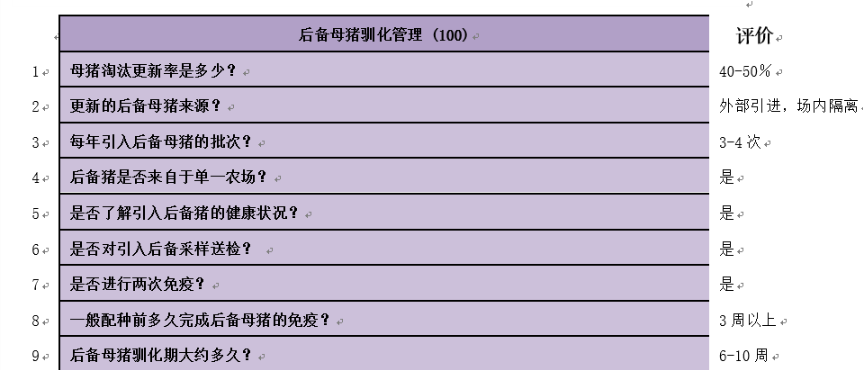 如果猪场仔猪发生腹泻,我们一般可通过健康状况(200分)、设施设备(250分)、管理措施(300分)、饲料和饮水(150分)、后备驯化(100分)等五个方面(总共1000分)进行科学评估,从而找出急需改进的薄弱环节,清单内容详细介绍如下(建议手机用户横屏阅读)。