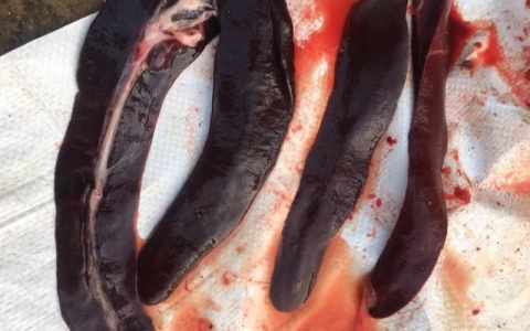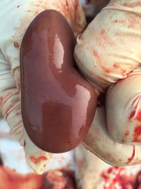 图 25.3 急性ASF肿大发黑的脾脏