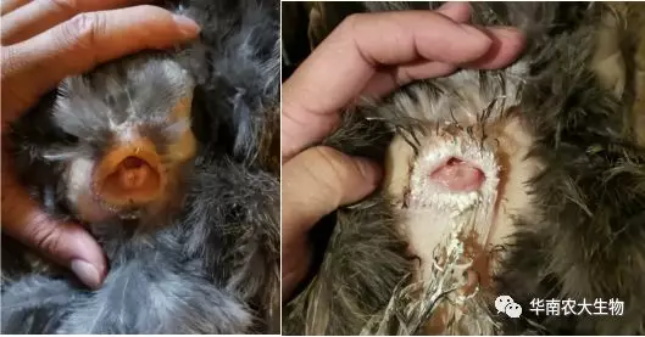 IBV病毒感染侵害生殖系统导致发育不良甚至不发育,临床表现为无法翻肛,产蛋少或是不产蛋;侵害泌尿系统导致肾脏对尿酸盐排泄不畅,临床表现为排白色尿酸盐粪便。