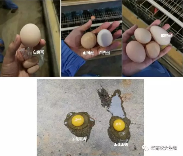 产出的种蛋中畸形蛋、蛋色、蛋壳品质不好的比例会增多。特别地,感染IBV的鸡产出种蛋会出现比较典型的蛋清呈现水样的情况。