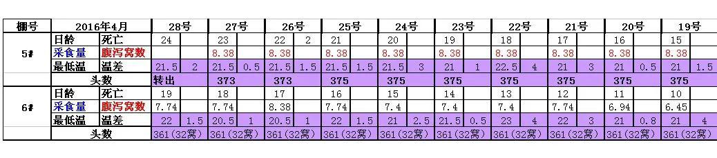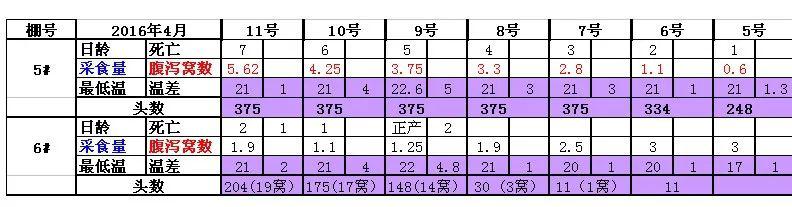上面的四张表格截图,是江苏省一个管理比较良好的猪场,2016年4月份其中两个个单元的统计数据。从中可以看出,23天的哺乳全期,5#单元的32窝,平均每头母猪采食了145Kg哺乳母猪料,全期日平均采食量为6.30公斤。
