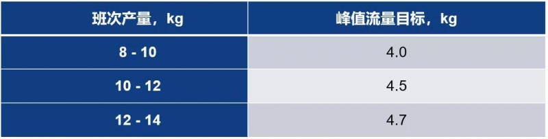 不同班次的产量也对应着不同的设置。低流量占比是指奶流量在低于1 kg/min的时间占整个挤奶时间的比例,小于15%可接受,理想目标是小于10%,指示是否过挤。