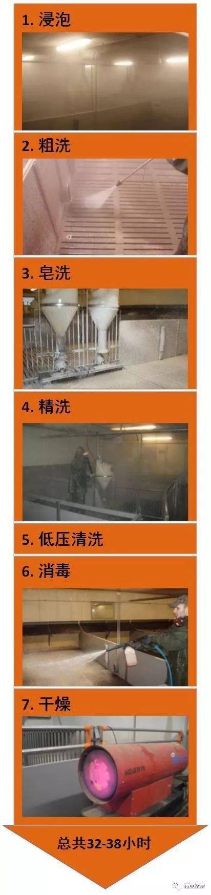 产房清洗的过程说明见右图,总时长约32~38小时