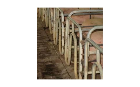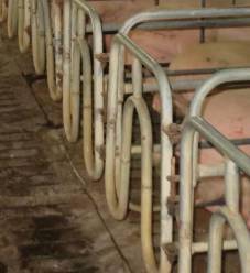 PSS农场顺应当今高产母猪产仔数高的特性,增加产房宽度,给予仔猪和母猪充足的空间(图16)。另外,给怀孕舍定位栏后门特殊的设计,保证怀孕母猪躺卧时有充足舒适的空间(图17)。