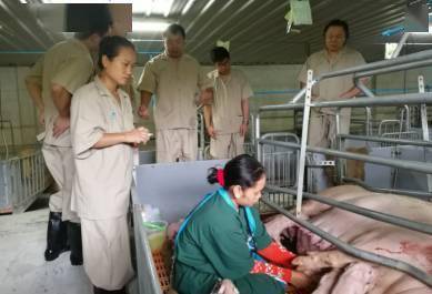另外,根据不同种类的母猪,设立三组人员进行配种,分组情况为:一、所有后备母猪;二、父母代1胎断奶+所有胎次断奶种猪;三、父母代2胎以上母猪。这种针对不同的母猪不同的输精方法,特殊群体特殊对待,极大的提高农场的分娩率,目前农场分娩率达90%~91%。