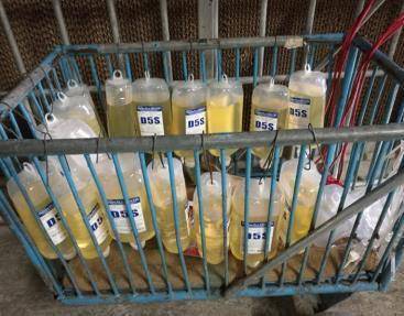 另外,实验室操作方面尽可能借助科学仪器(如精子密度仪)及管理软件,进行精确稀释及公猪数据管理,将主观判断降到最少。整个稀释过程确保在15分钟内完成,稀释液需要在使用前1个小时配好,稀释液与精液混合时,一定要保证两者温度基本一致。分装时注意要将精液瓶上面的空气排尽。