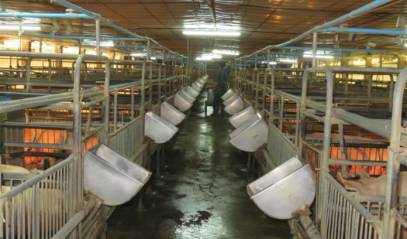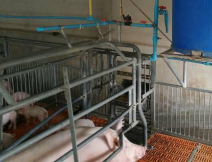 为了降低夏季热应激的影响,不仅使用水帘降温,而且还在母猪背部滴水,降低母猪体温(图15)。