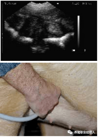 如母猪的一侧被装满尿液的膀胱遮住,则要在另一侧扫描。