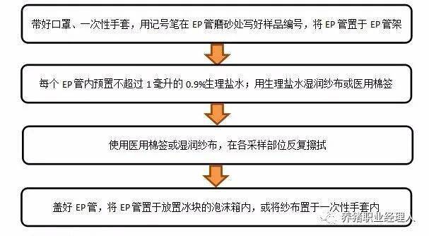 (1)采样前物资准备:一次性口罩、0.9%生理盐水、采样纱布或采样管(须含医用棉签和5mlEP管)、剪刀、自封袋、EP管架、一次性无粉手套、油性记号笔、泡沫箱、冰块、75%酒精棉签