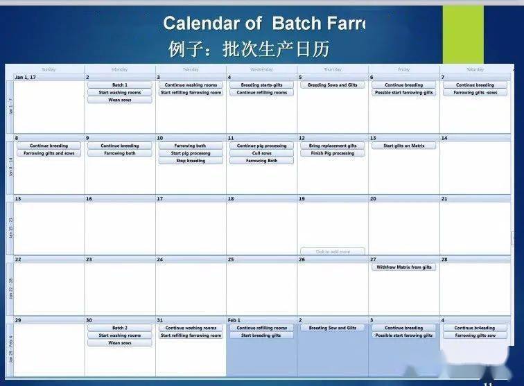 *批次配种数需要根据母猪死亡损失,淘汰率,分娩率变化,可用的返情母猪,非周期断奶母猪和后备数量等因素进行调整。此外,要考虑断奶后母猪发情所需要的天数。